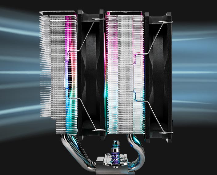 MP7, termal kapasiteyi en üst düzeye çıkarmak için çift ısı dağıtıcı yığınına ve iki adet 120 mm soğutma fanına sahiptir; bu da onu aşırı ısı yükleri için yüksek performanslı soğutma talep eden oyuncular ve hız aşırtma meraklıları için ideal bir seçim haline getirir.